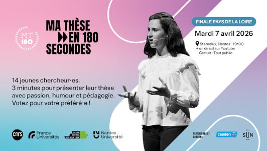 - My thesis in 180 seconds: show your support to Maël Chamming's in the regional finalApril 7, 2026Maël Chamming's (GeM and LS2N), a PhD student at Centrale Nantes, is through to the regional final of the MT180 (My thesis in 180 seconds).