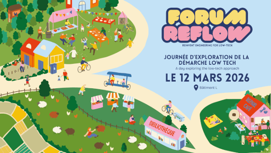- Forum REFLOW à Centrale Nantes : une journée d'exploration de la démarche low-tech12 mars 2026Après le succès des 3 premières édition, le Forum Low-Tech revient à Centrale Nantes le 12 mars 2026.Nouveauté cette année : le forum Low-Tech change de nom pour devenir le Forum REFLOW.